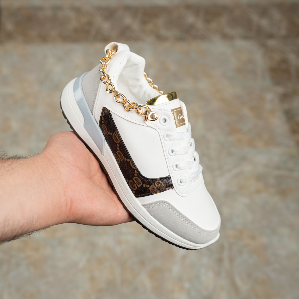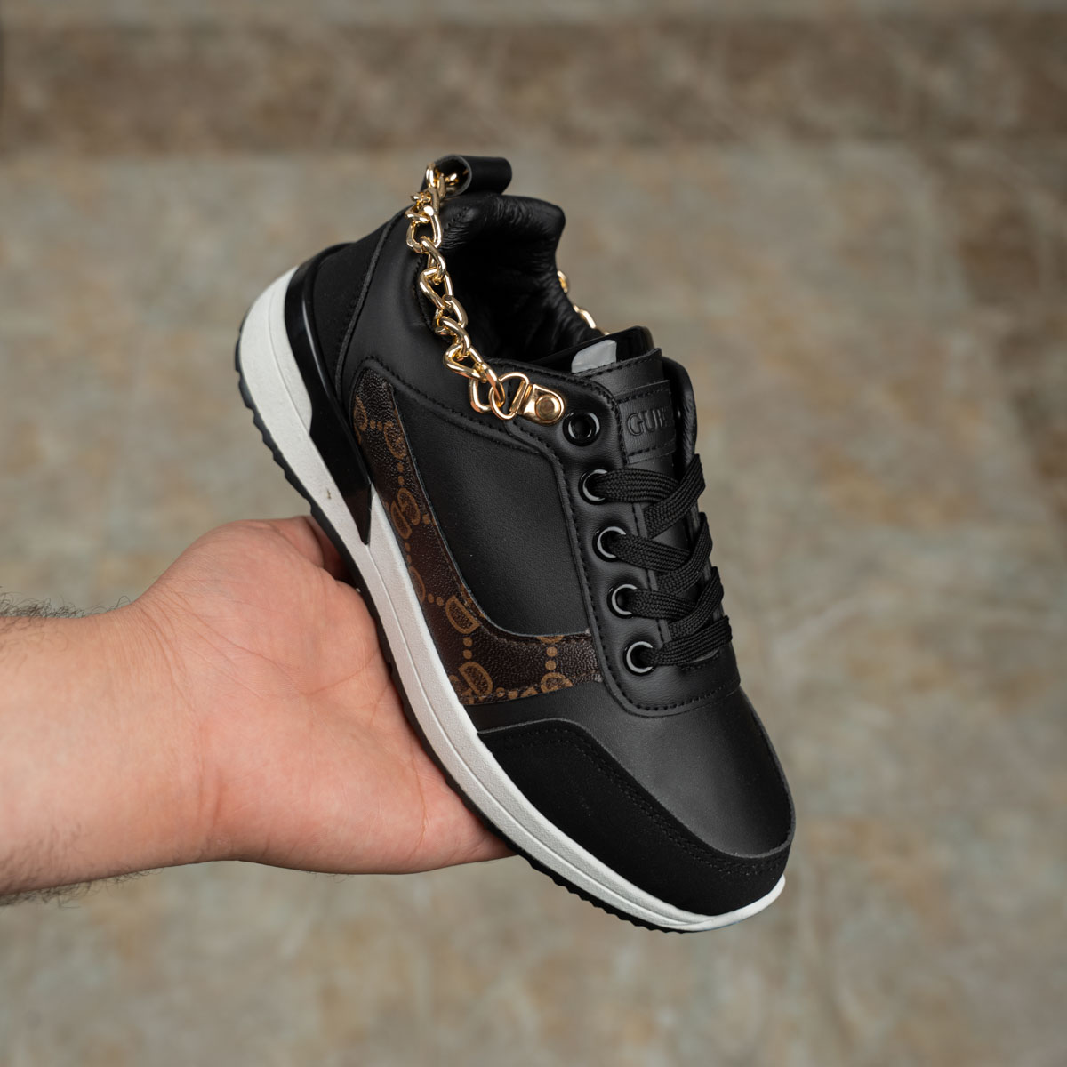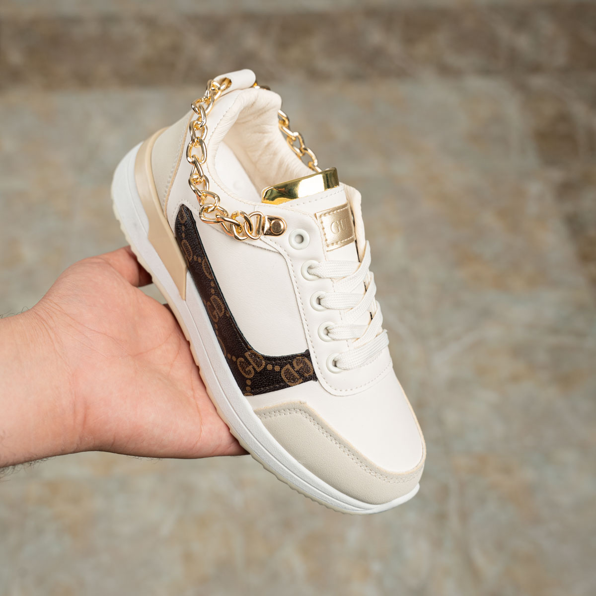 تزيّنه سلسلة دهبية أنيقة تضيف لمسة فخمة تخليه مختلف عن أي كوتش تقليدي.