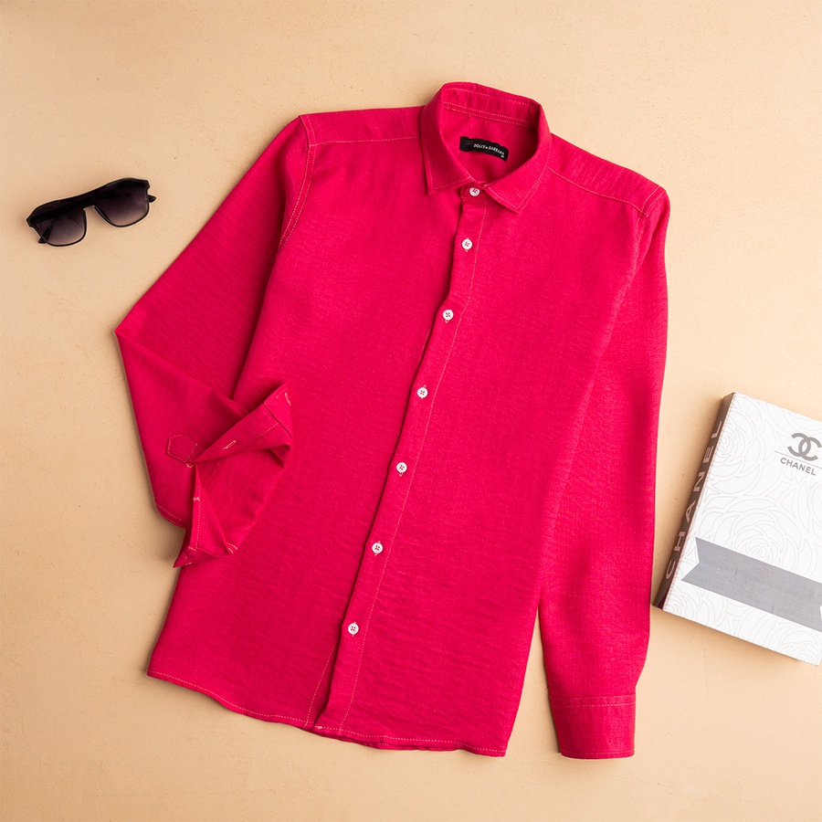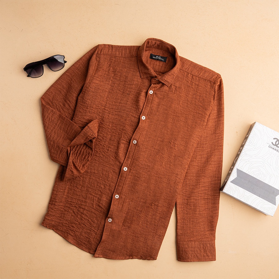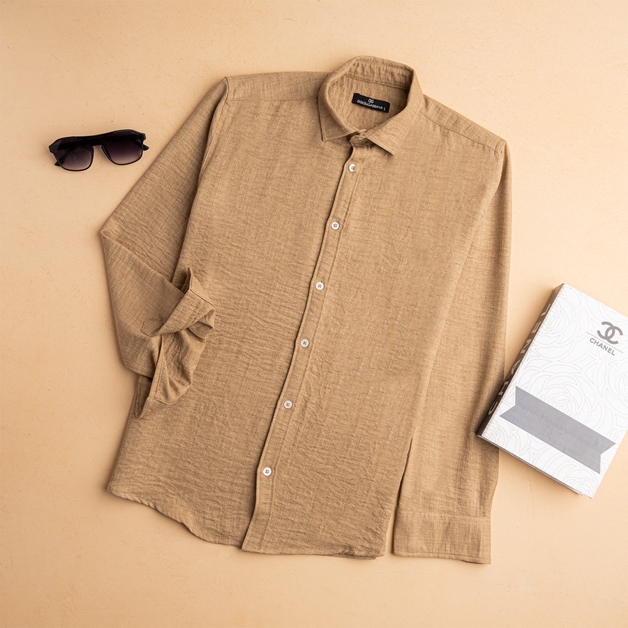 قميص كتان مستورد بجودة عالية، معالج ضد الوبرة والانكماش علشان يفضل ثابت على شكله حتى بعد الغسيل.