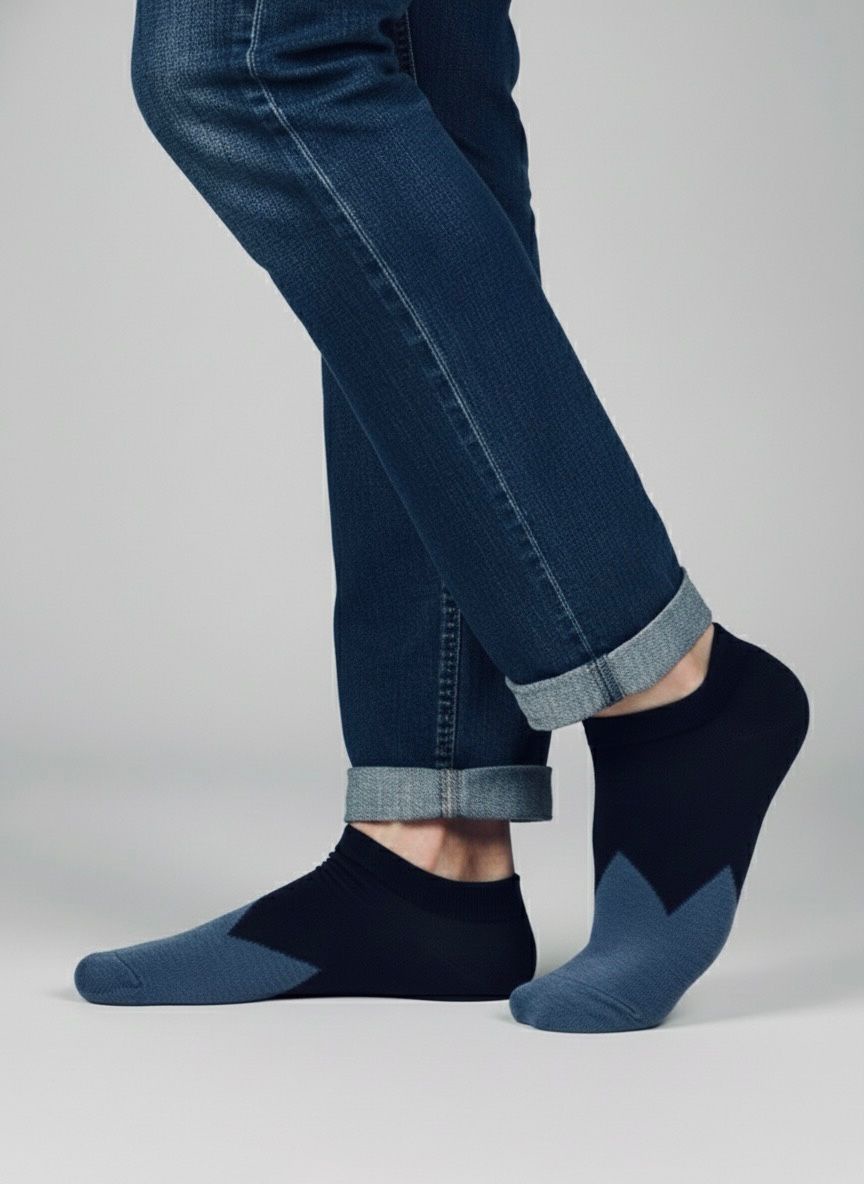 الباكيت فيه ٣ قطع بخامات ممتازة 95% قطن × 5% ليكرا عشان يديلك تهوية كويسة وملمس ناعم على القدم، مع مرونة تخليه ثابت ومريح من غير ما يضايقك.