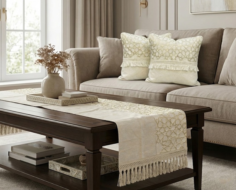 🛒 رانر مع 2 كفر كوشن… تفصيلة بسيطة تكمّل ديكور بيتك بذوق راقٍ 🌙✨