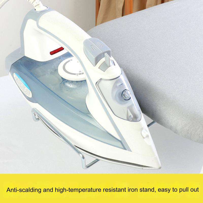 تصميم عملي: مزودة بساقين قابلة للطي، مع مكان مخصص لتخزين السلك وحامل للمكواة، مما يجعل تجربة الكوي أسهل وأكثر راحة.