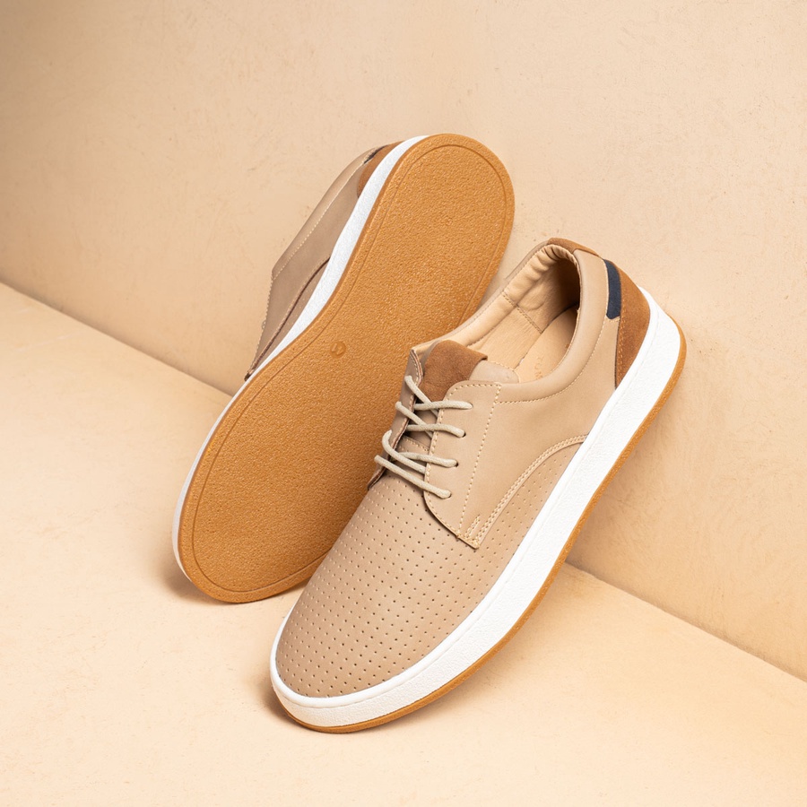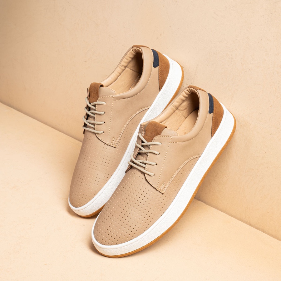 حذاء رجالي أنيق مصمم بأعلى معايير الجودة من جلد مستورد مخرم مطعّم بالشمواه ليجمع بين التهوية المثالية والمظهر العصري.