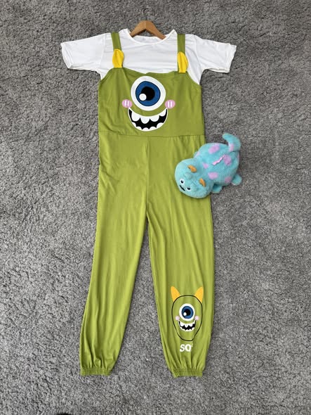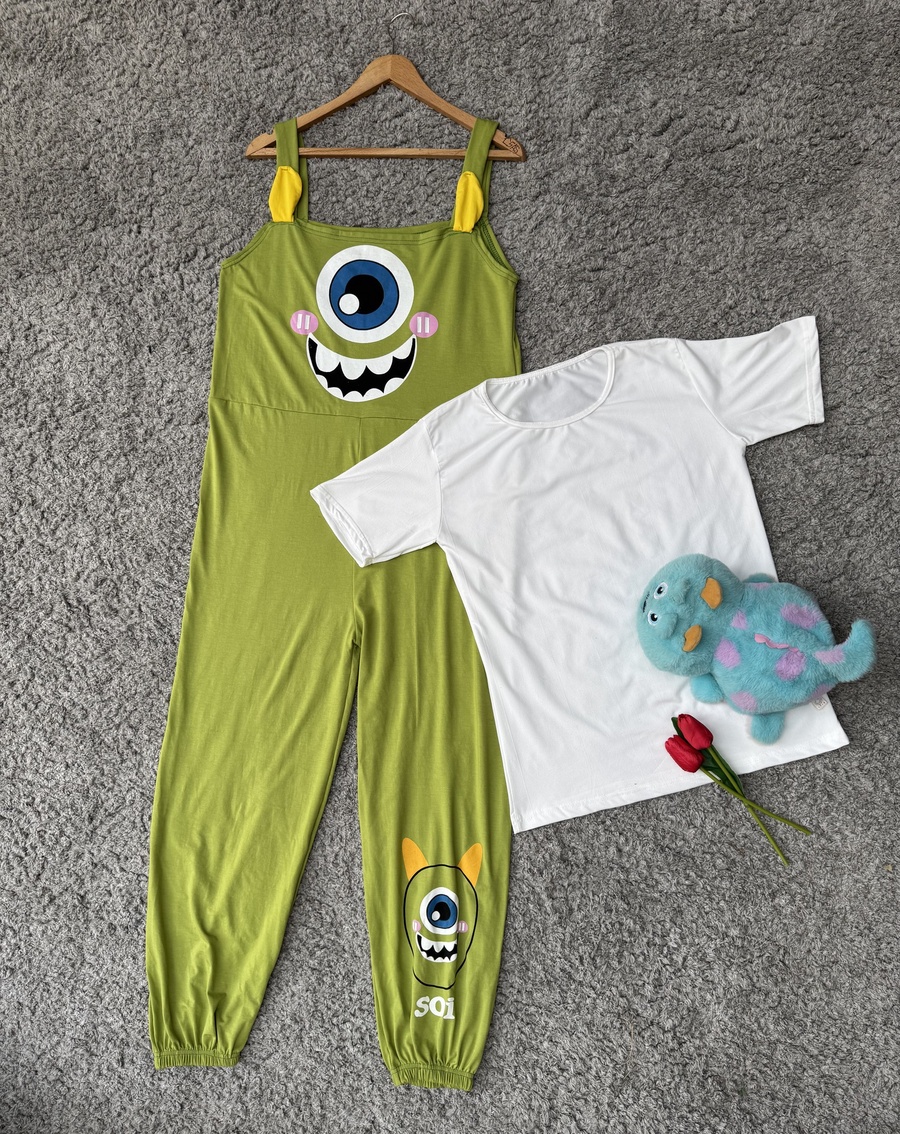 تصميم مميز مكوّن من قطعتين: جمبسوت بطبعة شخصية Mike Wazowski المحبوبة + تيشرت سادة بسيط وأنيق، خامته طرية على البشرة وتديكي راحة تدوم طول اليوم.